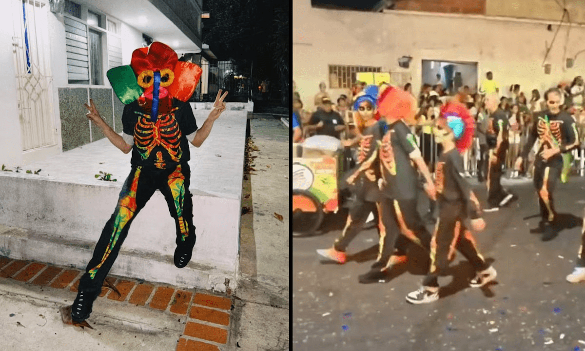 La reina del pop latino se unió a la celebración de este año, que se celebró en su honor bajo el lema “En Barranquilla se baila así”. Para evitar ser reconocida, se integró al grupo de 250 personas que formaban el disfraz colectivo Palo e’ Muerte, ubicado en la posición 150C del recorrido. Alrededor de las 9:30 p.m., el grupo comenzó su presentación, y sin que nadie lo notara, Shakira disfrutó y bailó al ritmo del carnaval de su ciudad natal.